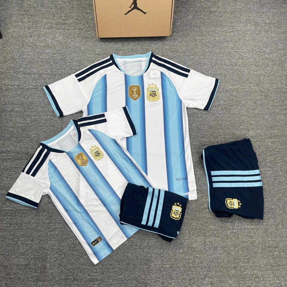Bộ Bóng Đá Trẻ Em Đội Tuyển Argentina Sân Nhà WC 2026 Trắng Xanh