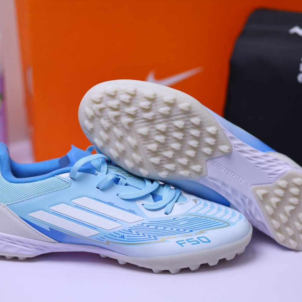 Giày Bóng Đá Adidas F50 Elite Lưỡi Gà Rời HQ TF Xanh Biển Trắng Messi