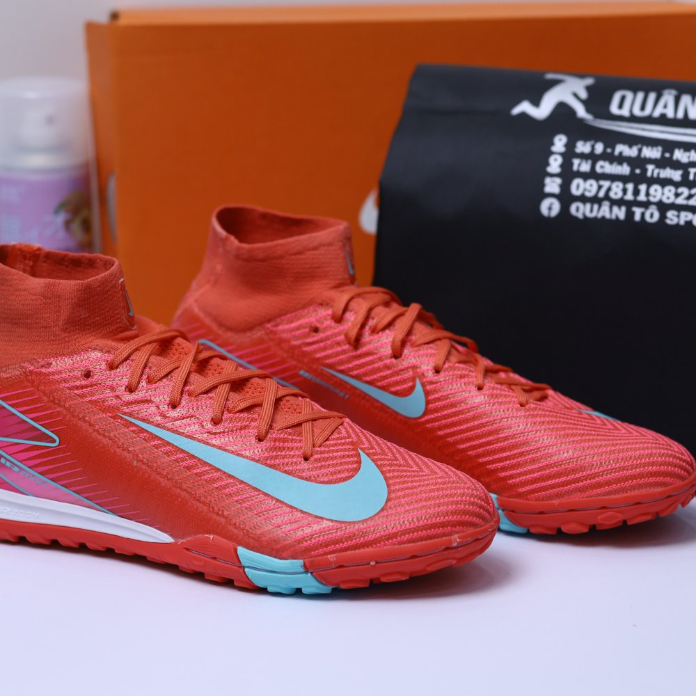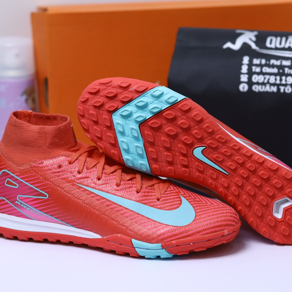 Giày Bóng Đá Nike Mercurial Superfly 10 Elite Đỏ Hồng Vạch Xanh Ngọc Cổ Cao TF