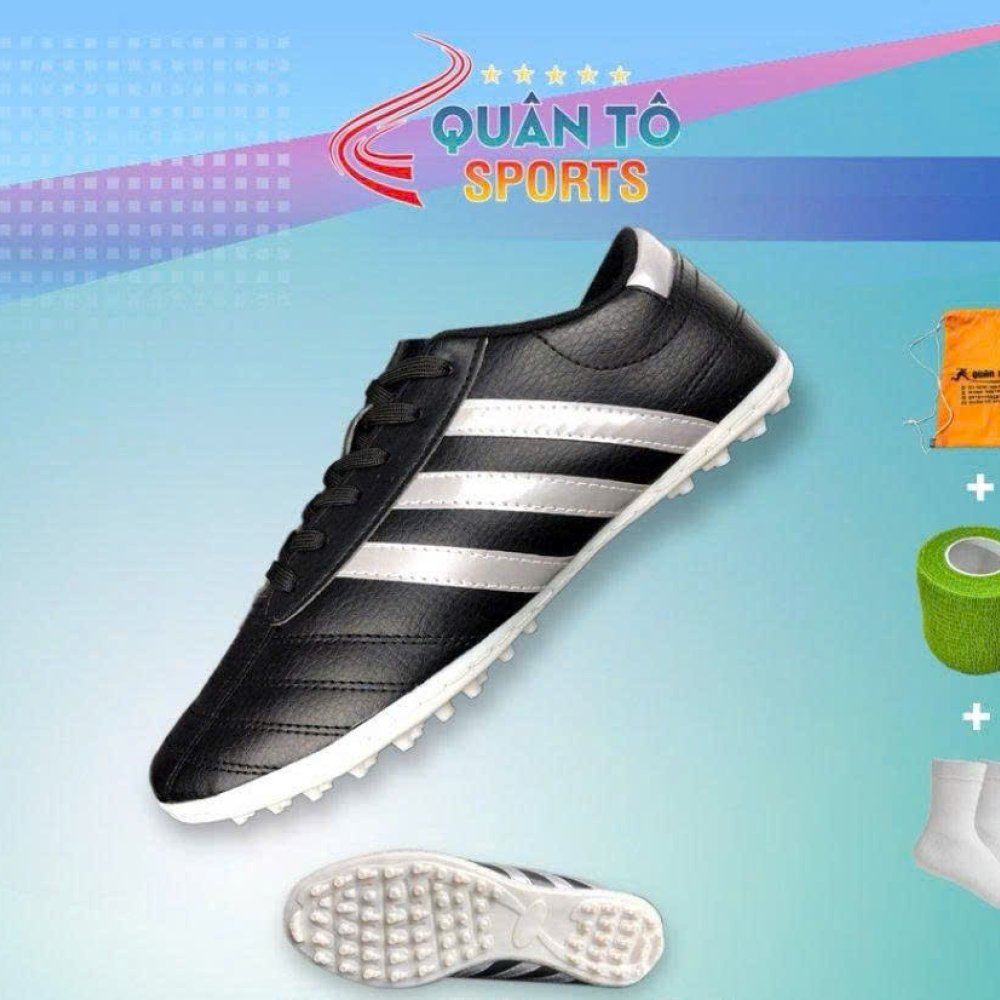 Giày Bóng Đá Trẻ Em Wika 3 Sọc - Đen Sọc Bạc