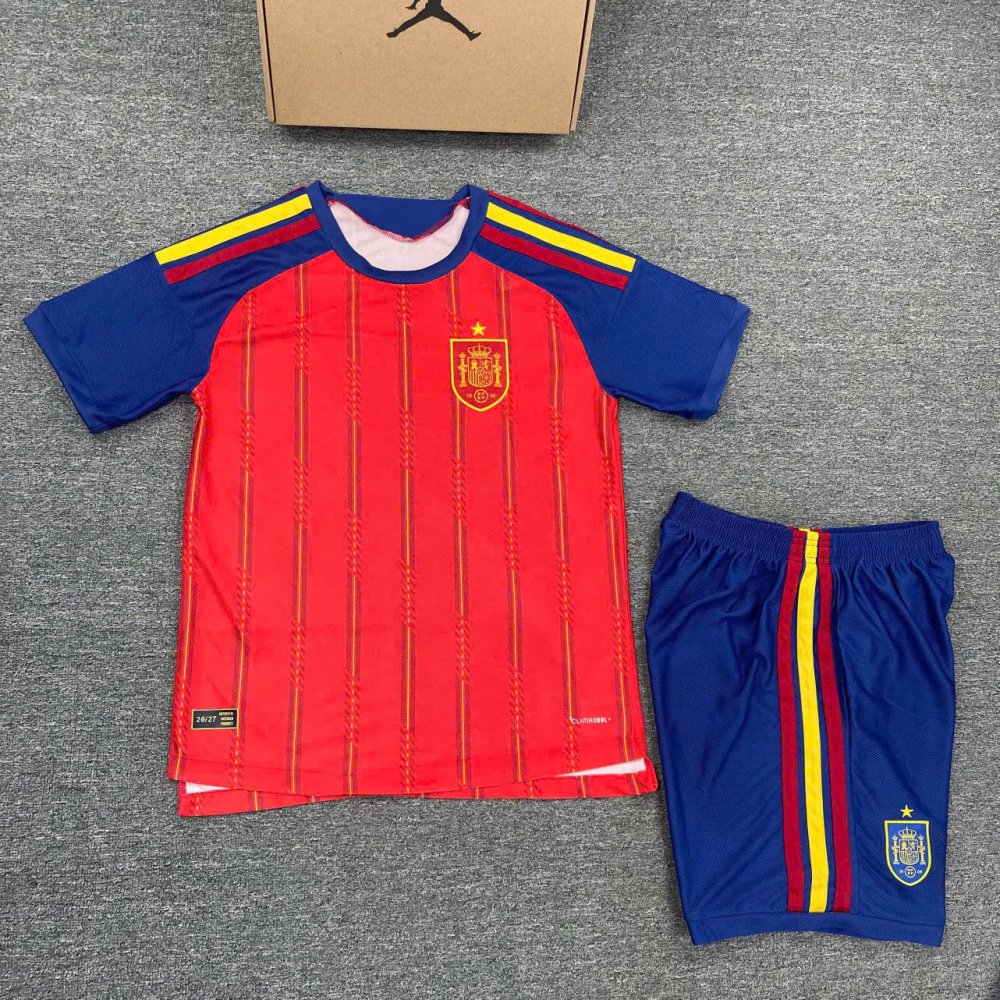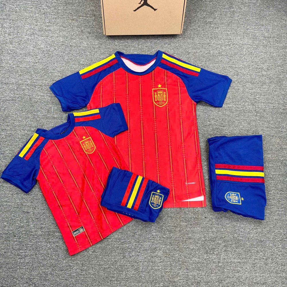 QUẦN ÁO BÓNG ĐÁ TRẺ EM TÂY BAN NHA SÂN NHÀ VẢI LÔNG RỒNG -ĐỎ