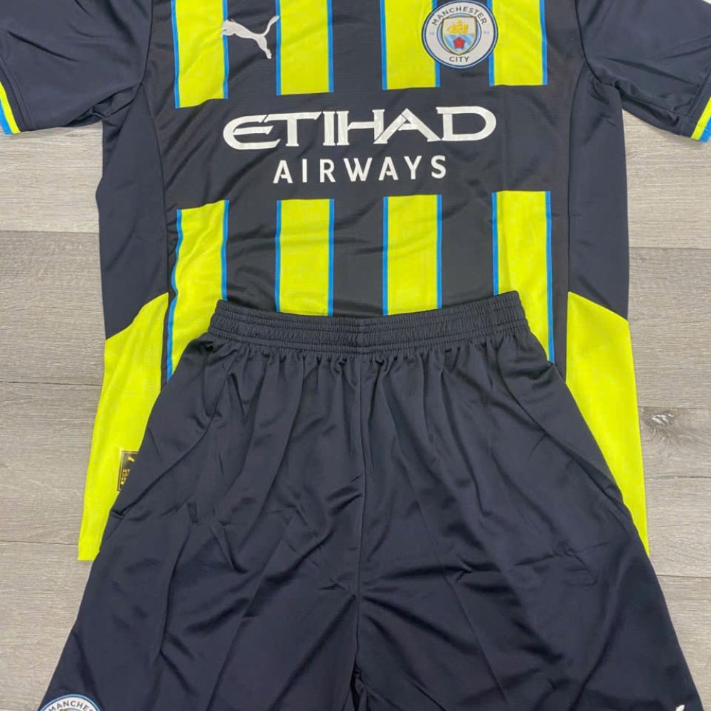 Áo Bóng Đá CLB Man City Sân Khách 2025 Tím Than Xanh Chuối