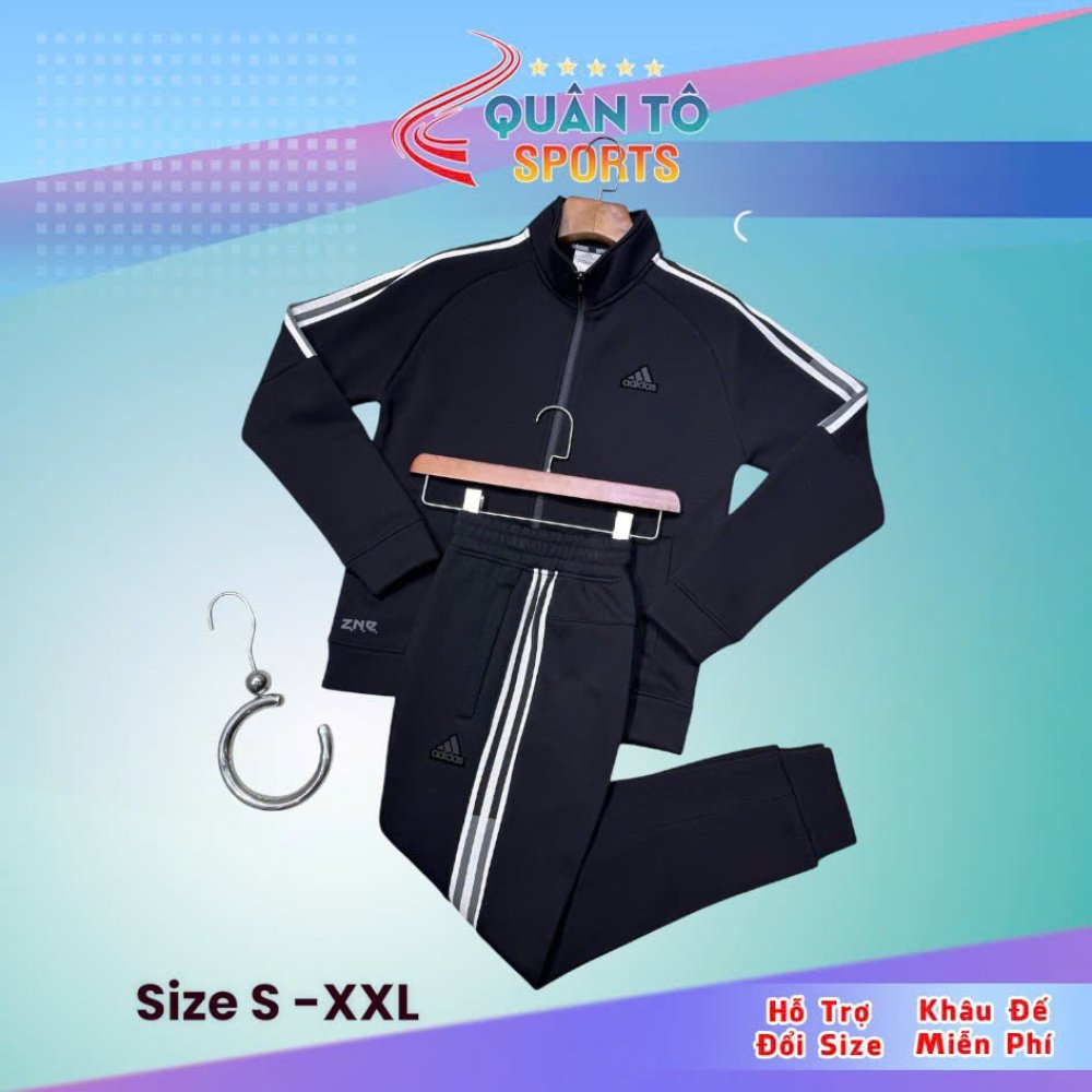 Bộ Thể Thao Adidas Cao Cấp 3 Sọc Cả Tay Lót Nhung - Đen