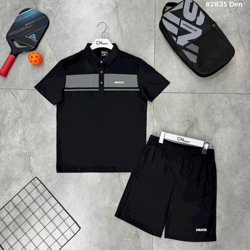 Bộ Thể Thao Paris Đen Viền Ghi 2835