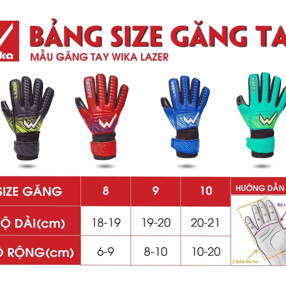 Găng Tay Thủ Môn Wika Lazer Có Xương - Đỏ Đen