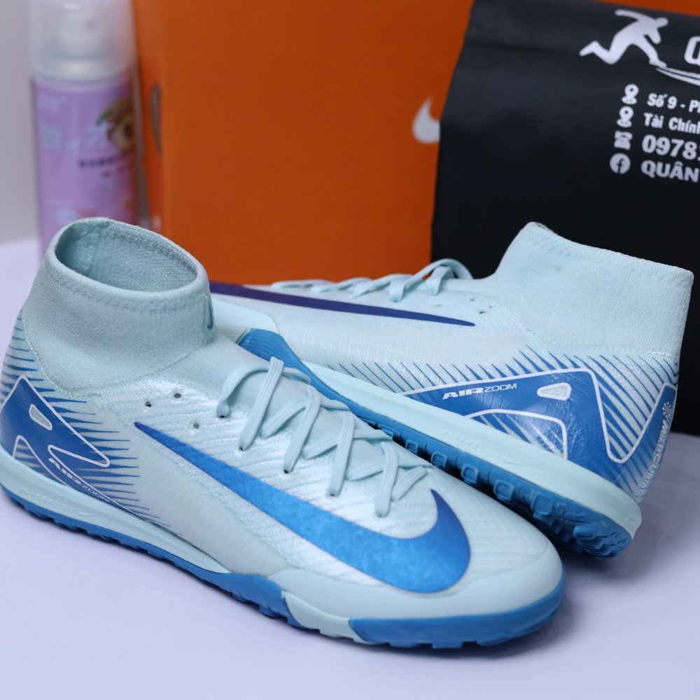 Giày Bóng Đá Nike Mercurial Superfly 10 Cổ Cao TF xanh