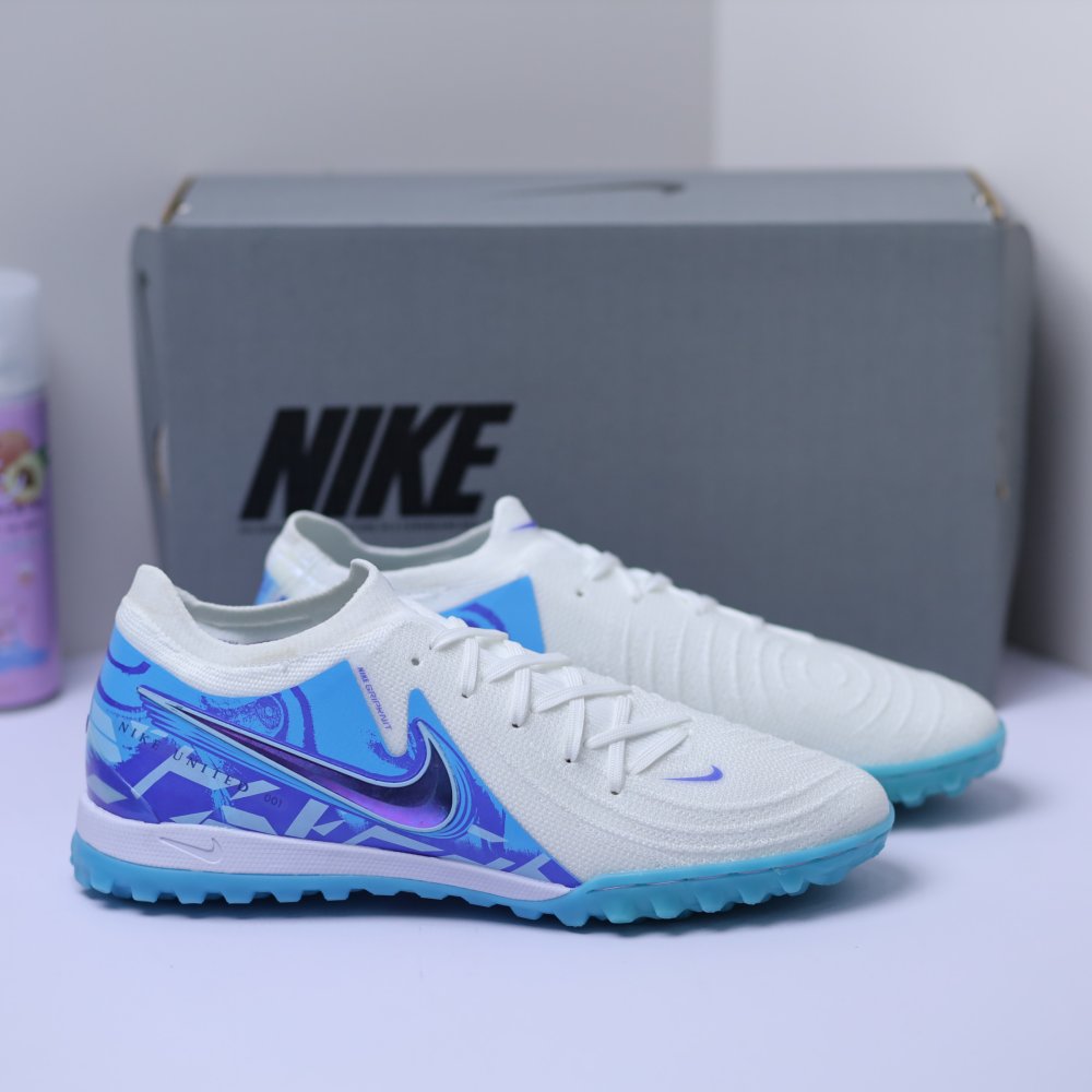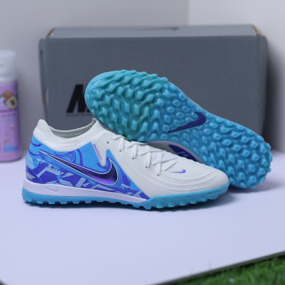 Giày Bóng Đá Nike Phantom GX2 Elite V1 Cổ Lửng TF Trắng Gót Xanh Dương Vạch Đen