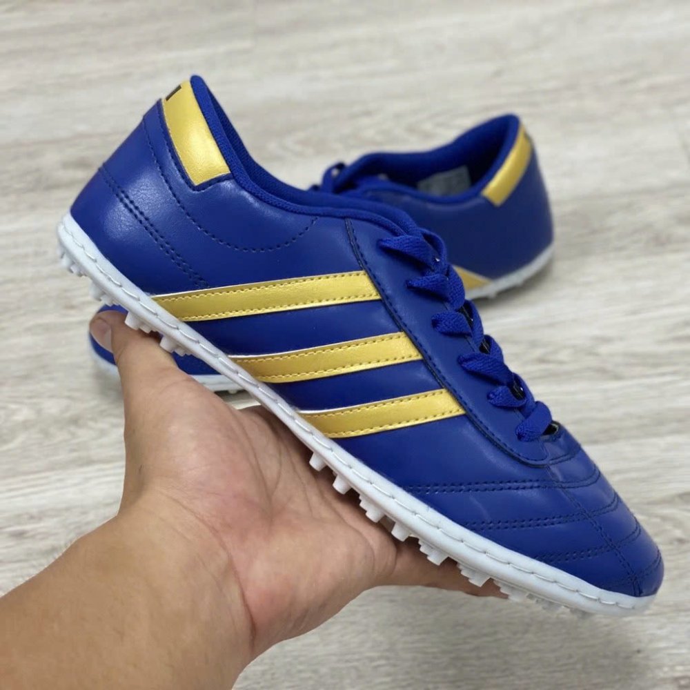 Giày Bóng Đá Wika 3 Sọc Trẻ Em Xanh Dương Viền Vàng Đồng